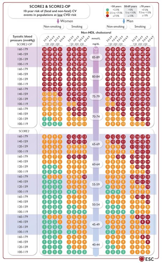 La société Européenne de Cardiologie (ESC) recommande depuis 2021 un mode de calcul du risque cardiovasculaire : SCORE2 et SCORE2-OP